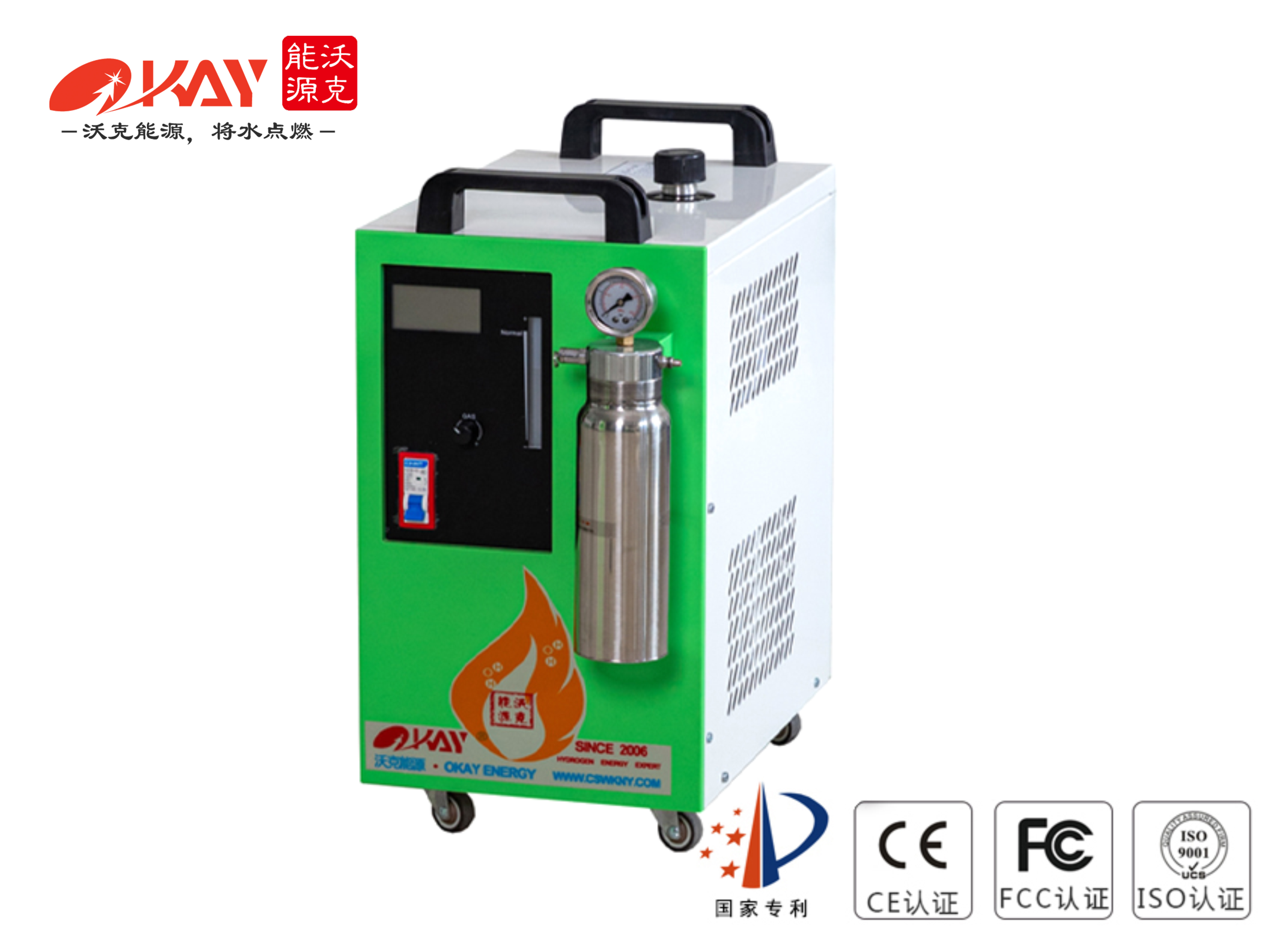 4、操作安全:水燃料氫氧機(jī)沒有氣體存儲,即產(chǎn)即用,開機(jī)產(chǎn)氣,關(guān)機(jī)停止產(chǎn)氣,機(jī)器自帶過壓保護(hù)裝置,不像高壓氣瓶存儲氣體有安全隱患,另外水燃料氫氧機(jī)有6道防回火裝置。100%有效阻斷因為操作失誤引起的回火現(xiàn)象。